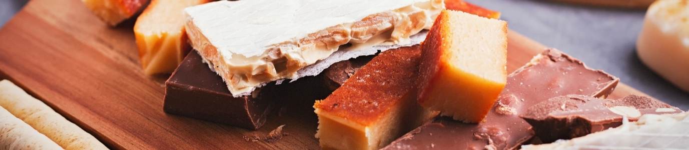 El turrón de Alicante es el otro rey de los turrones españoles. Se elabora con almendras que se tuestan ligeramente y miel. Tiene su origen en la provincia de Alicante, al sur de Valencia. En España es tan popular que durante las navidades podrás encontrar este turrón en la mayoría de las casas. Es típico presentarlo en una bandeja junto con otros dulces navideños como el turrón de Jijona, los mazapanes y los polvorones.